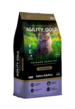 - Control de Peso: Gracias a su fórmula balanceada, Agility Gold ayuda a regular el peso de tu gato, evitando el sobrepeso que puede surgir después de la esterilización.